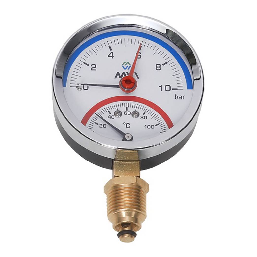 Термоманометр радиальный MVI, до 6 бар, 0-120C, D80 мм, с нижним подключением G1/2