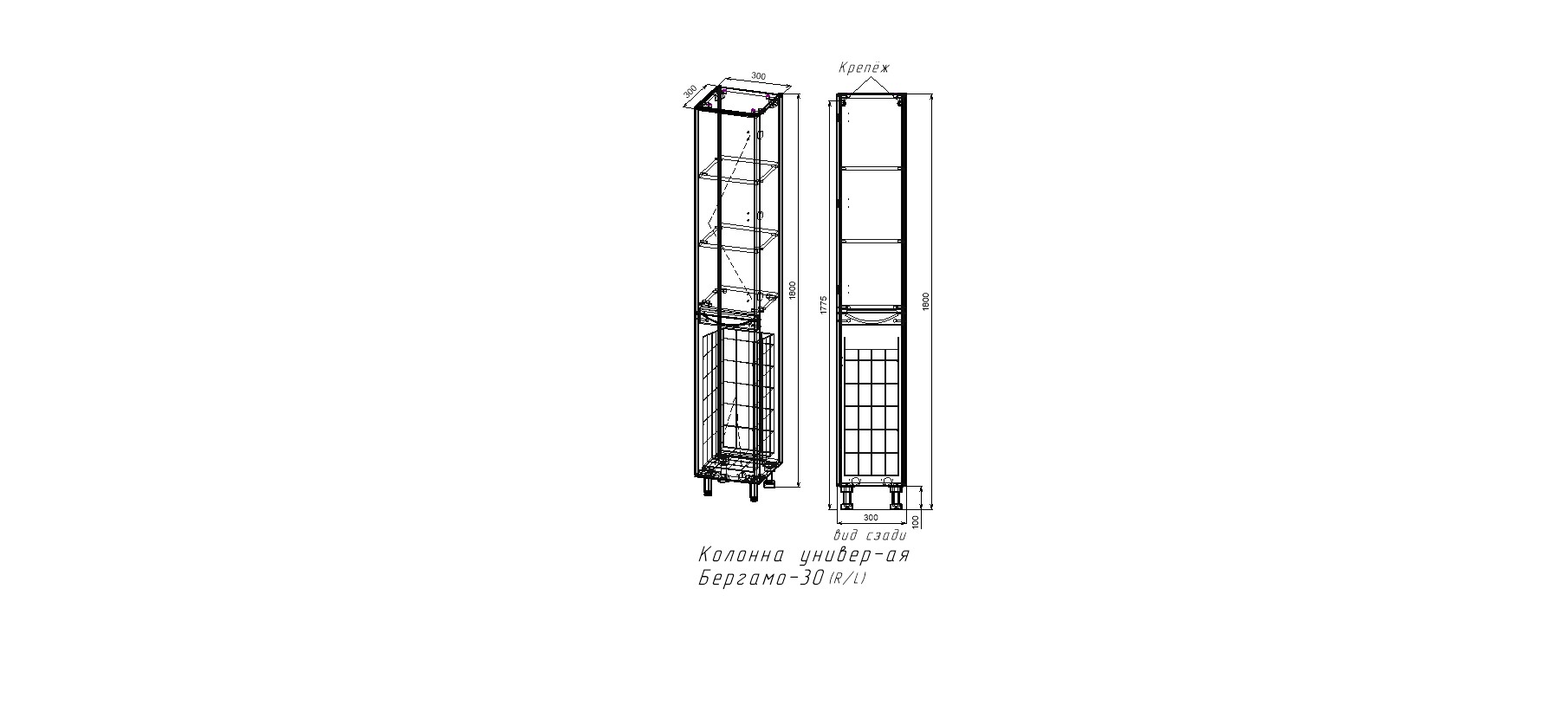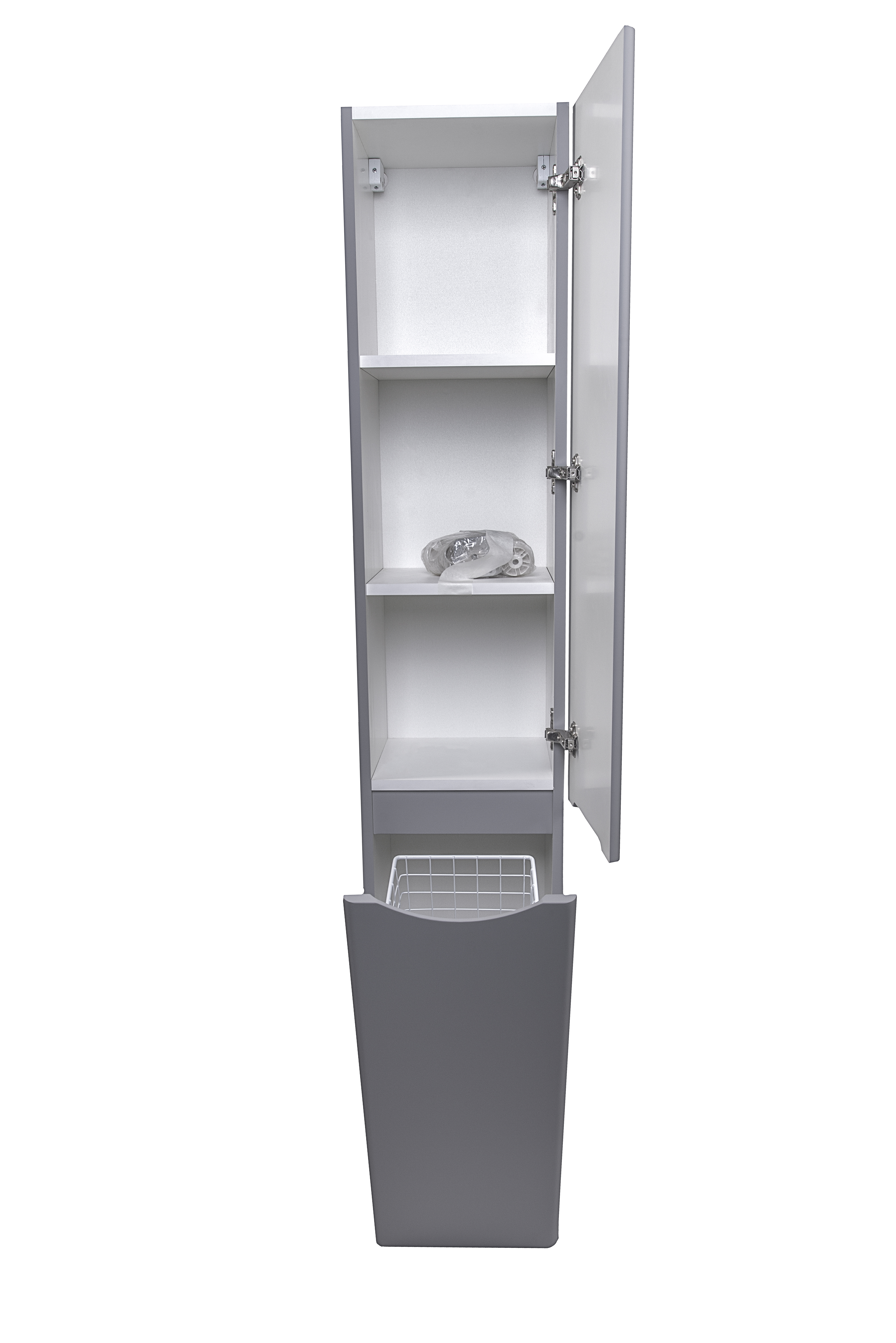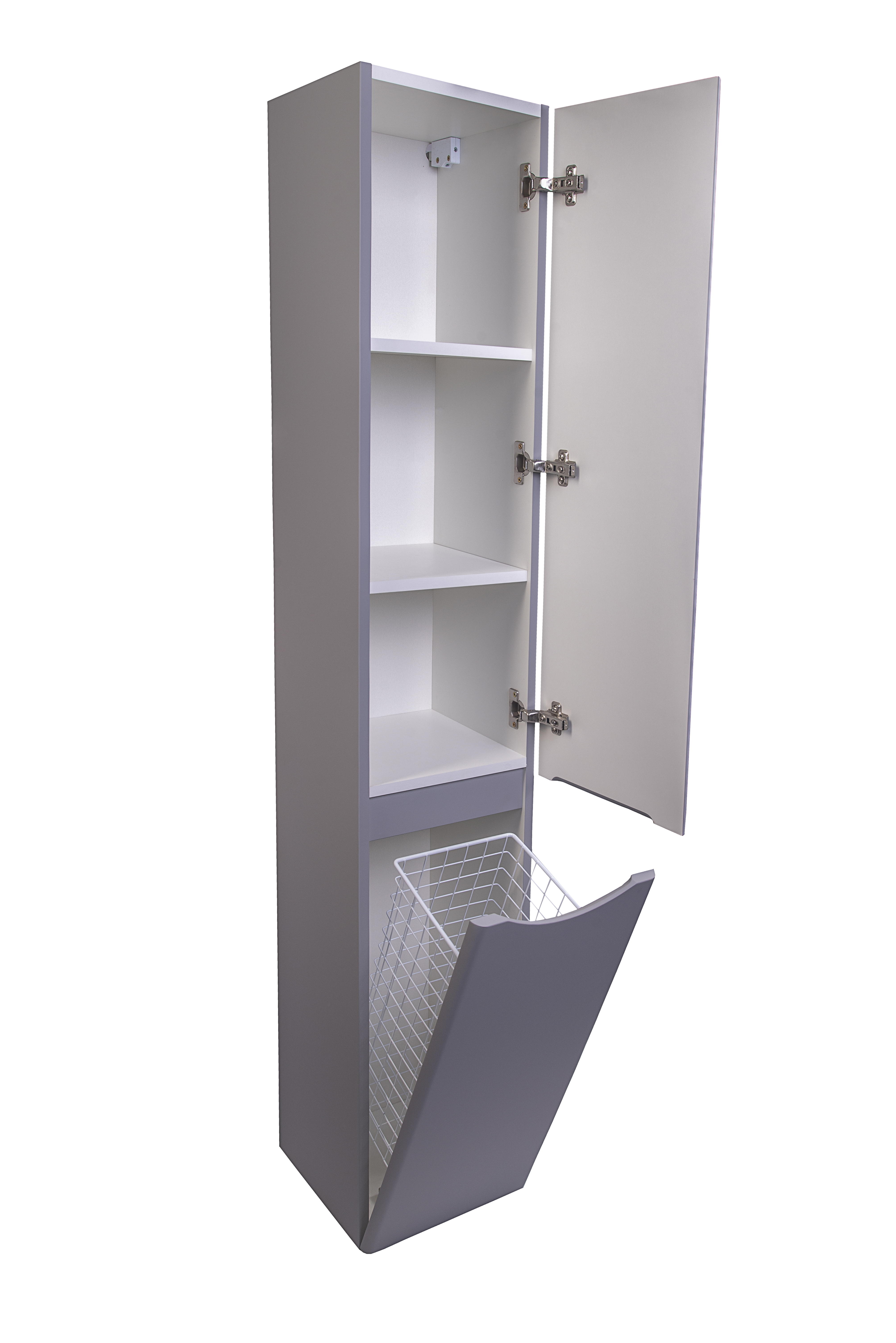 Колонна универсальная "Бергамо" с корзиной, Люкс антискрейтч серый, PLUS Колонна универсальная "Бергамо" имеет серый цвет и антискрейтчное покрытие. Она оснащена корзиной для дополнительного хранения и предназначена для средних по размеру ванных комнат. Цвет: Серый, Форма: Прямоугольная, Материал: МДФ или ЛДСП, Назначение: Хранение в ванной