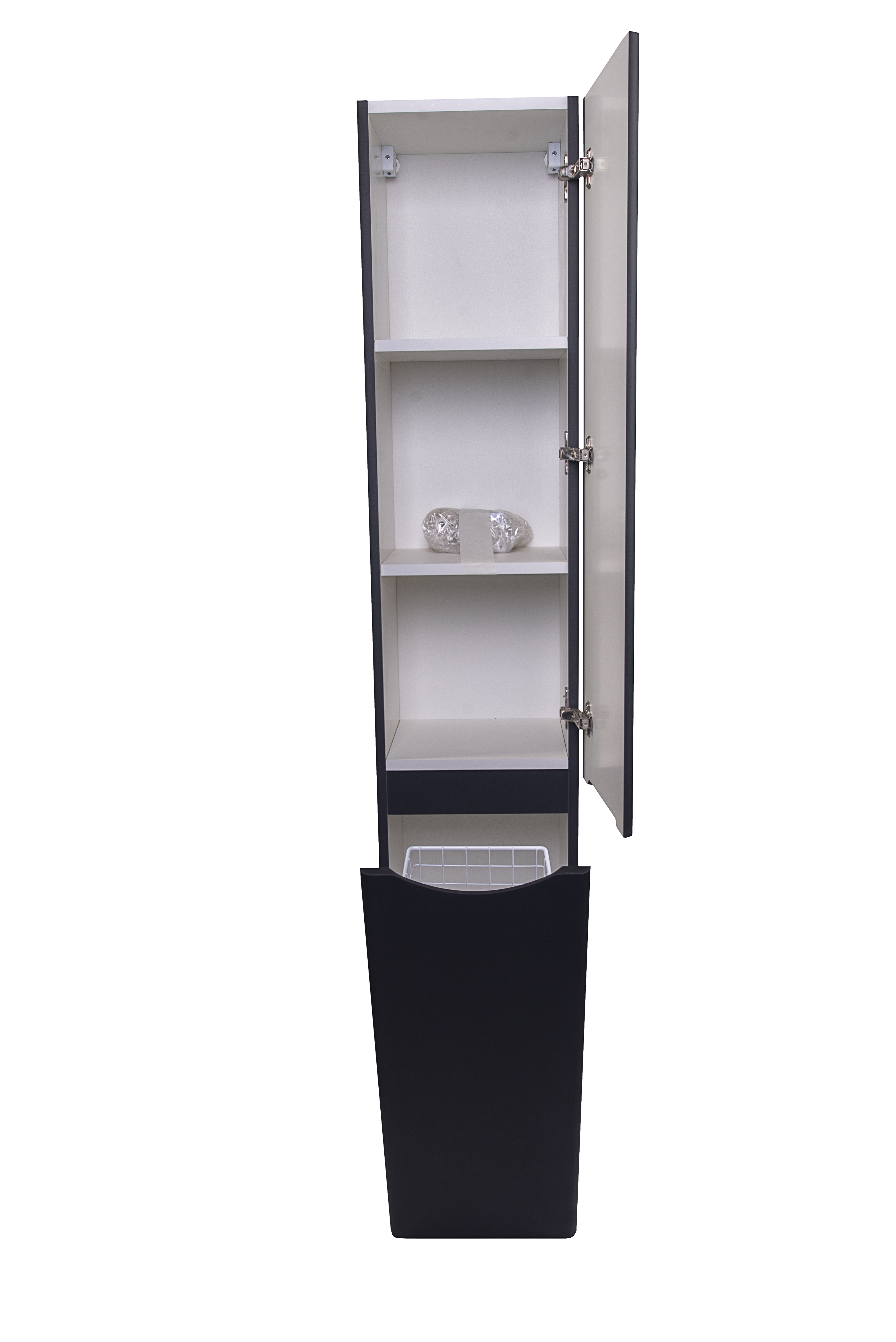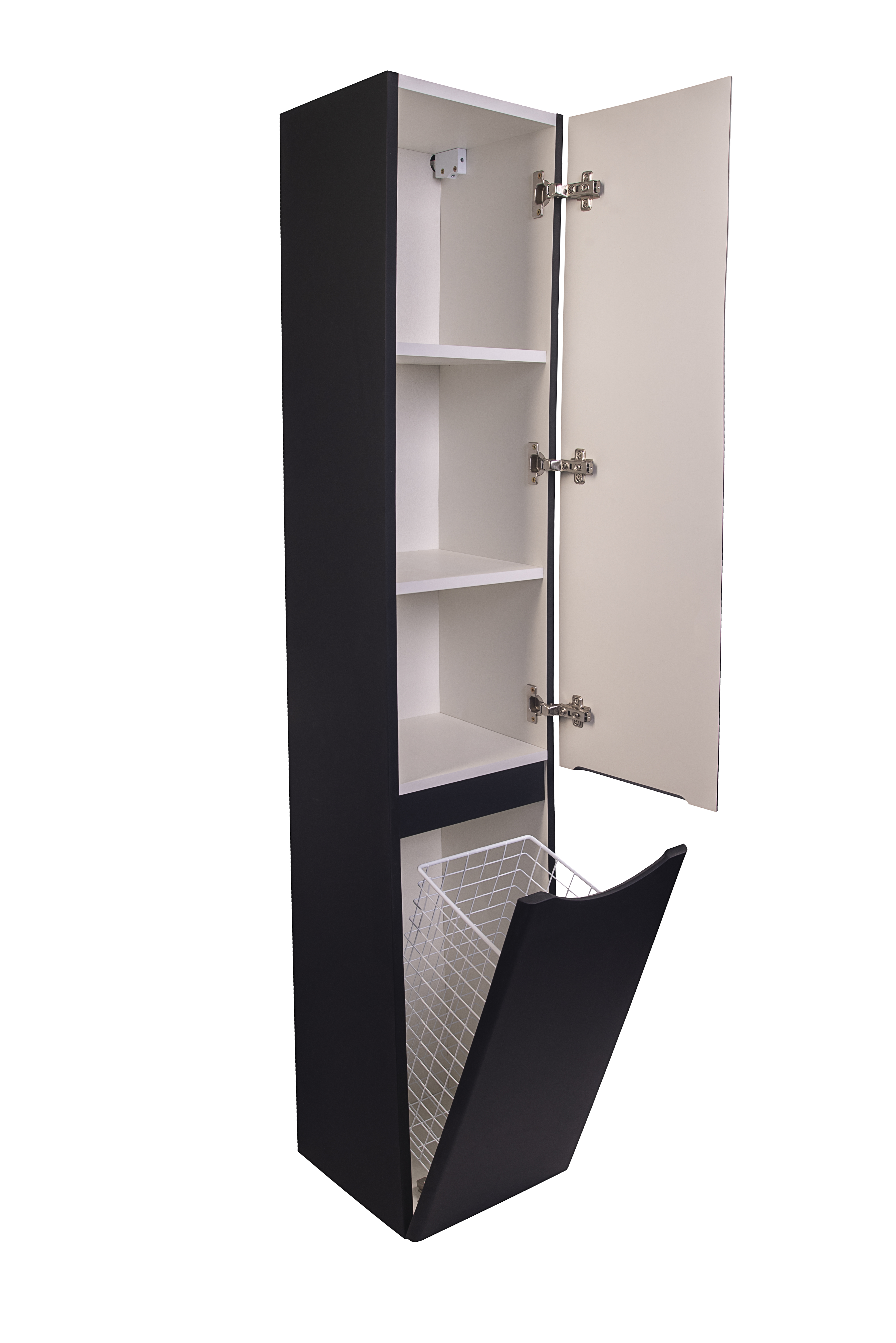 Колонна универсальная "Бергамо" с корзиной, Люкс антискрейтч черный, PLUS Колонна универсальная "Бергамо" имеет черный цвет и антискрейтчное покрытие. Она оснащена корзиной для дополнительного хранения и предназначена для средних по размеру ванных комнат. Цвет: Черный, Форма: Прямоугольная, Материал: МДФ или ЛДСП, Назначение: Хранение в ванной
