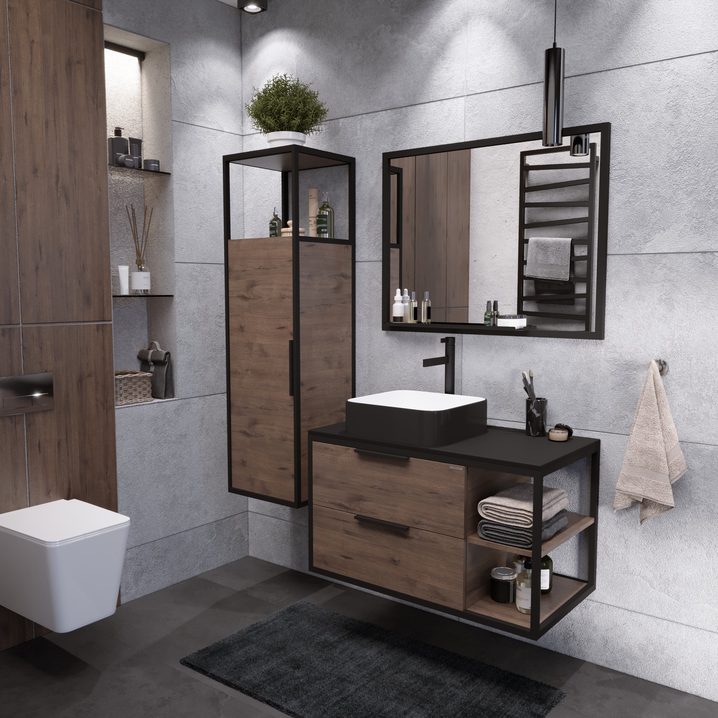 —Тумба подвесная "ЛОФТ-90 см" с 2-я ящ. веллингтон/металл черный (ум. GR-3015/GR-3016/GR-3031)