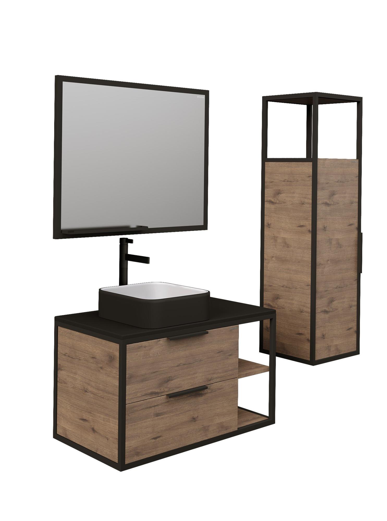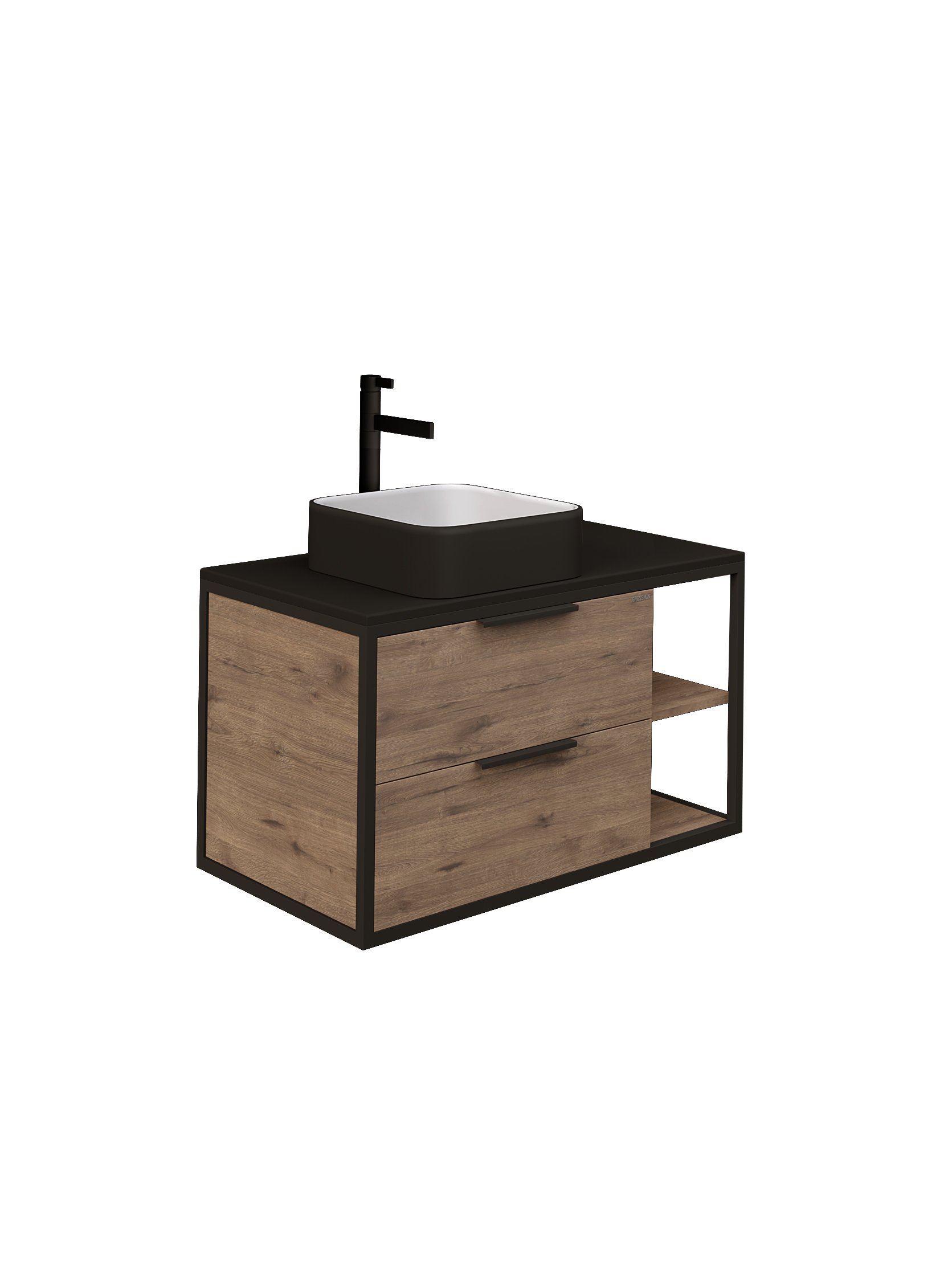 Тумба подвесная "ЛОФТ-90 см" с 2-я ящ. веллингтон/металл черный (ум. GR-3015/GR-3016/GR-3031)