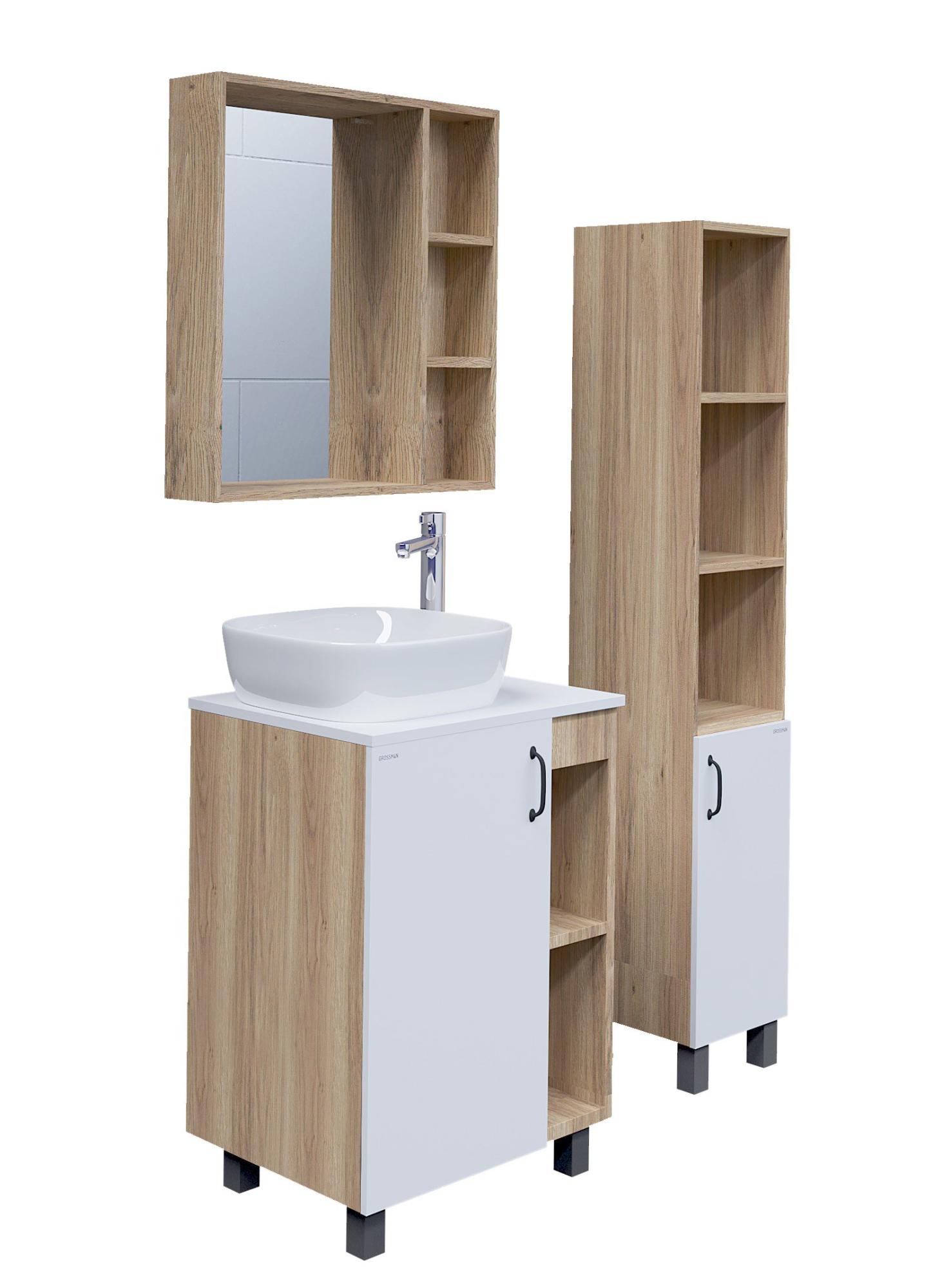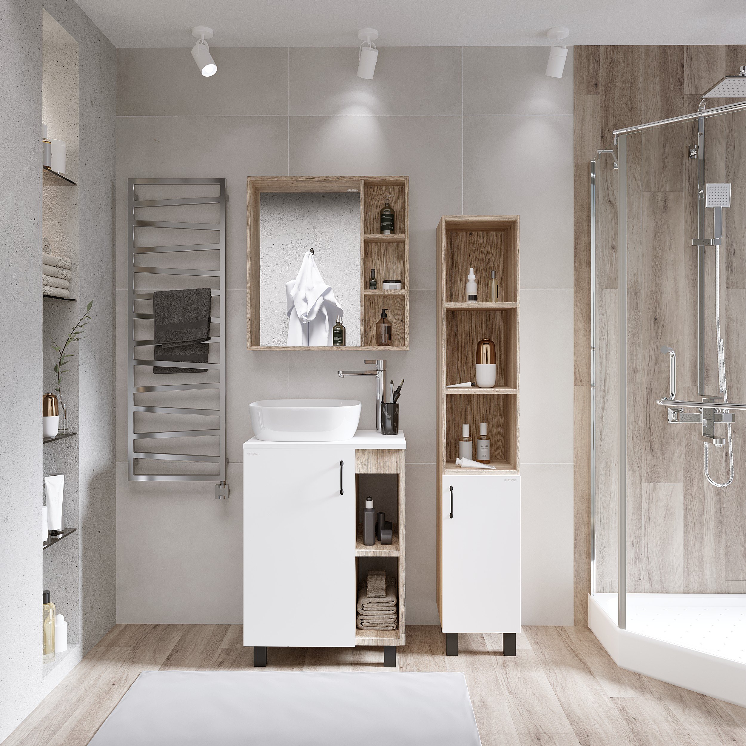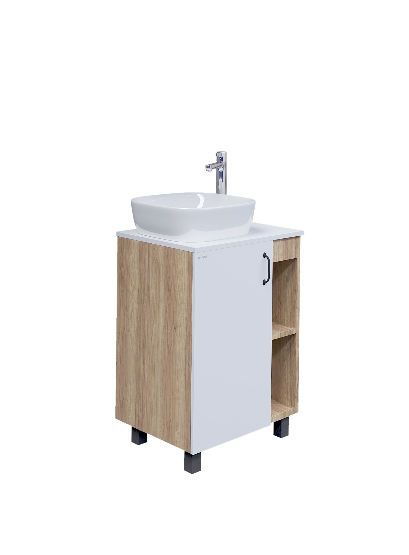 Тумба без раковины напольная "ФЛАЙ-60 см" дуб сонома/белая (ум.Фостер-60)