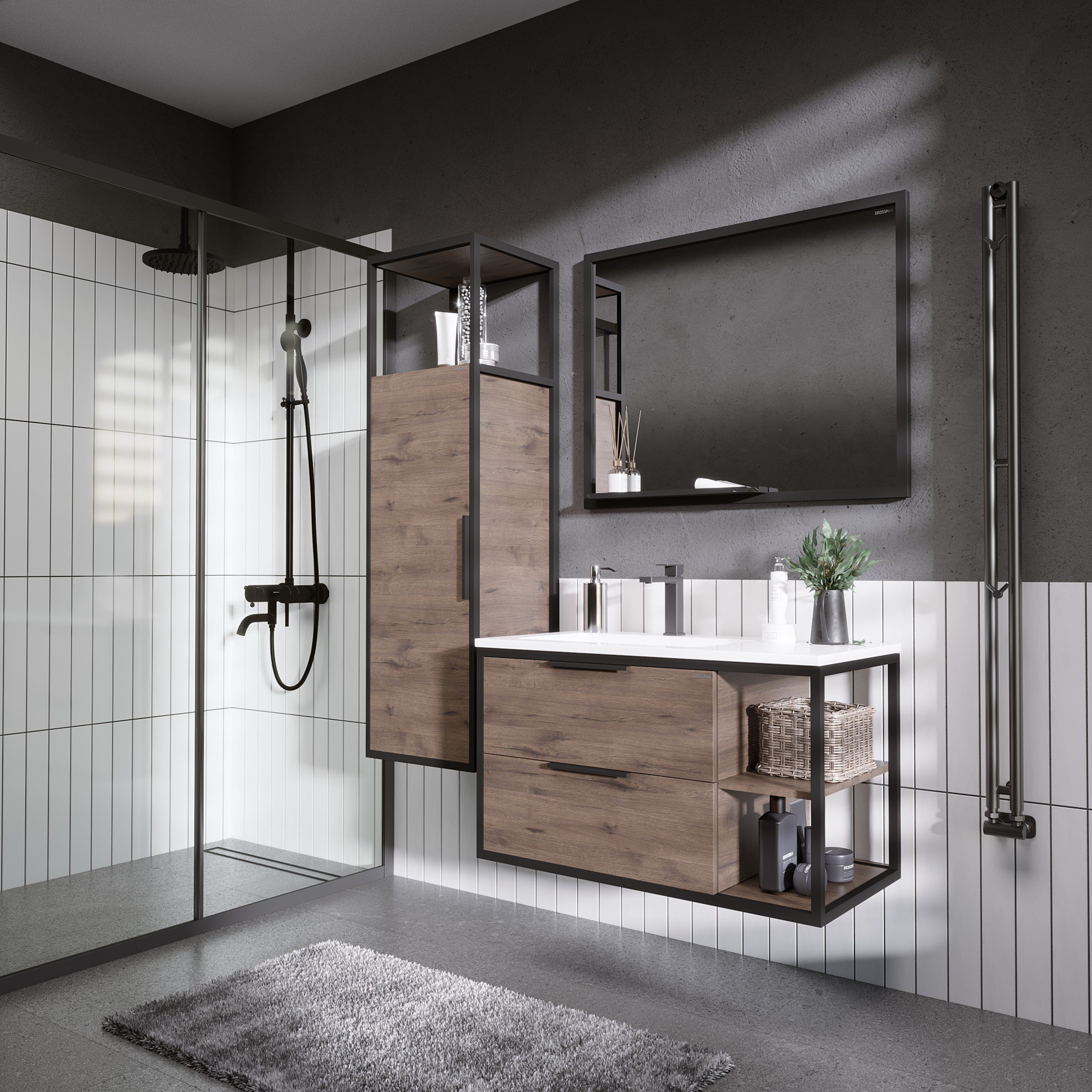 Зеркало Лофт 90 см с полочкой -зеркальное полотно в металлической раме и интегрированная полочка придают зеркалу сочетание современного дизайна и удобство в использовании. Открытая полочка обеспечивают доступ к аксессуарам. Зеркальное полотно на металлическом каркасе покрытое белой порошковой краской, устойчивое к перепадам температур и высокой влажности. Подвесы для крепления шкафа - в комплекте.