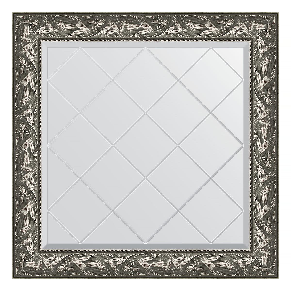 Зеркало настенное с гравировкой EVOFORM в багетной раме Византия серебро, 89х89 см, BY 4329