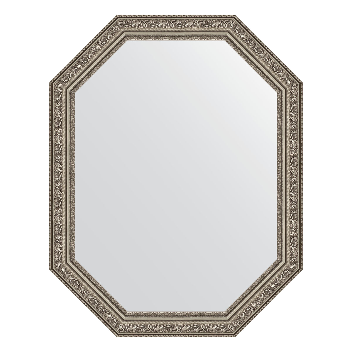 Артикул BY 7026: зеркало в багетной раме - виньетка состаренное серебро 56 мм (55x70 см) торговой марки EVOFORM; Вес нетто (в кг): 3,075; Материал упаковки: Картон/Пленка; Монтаж: Настенный; Крепление в комплекте: Винт-костыль, дюбель; Материал: Стекло, пенополиуретан; Форма зеркала: Восьмиугольник; Толщина зеркального полотна (в мм): 4; Обработка кромки зеркального полотна: Шлифованная; Гарантия 5 лет при условии правильной эксплуатации; Не подлежит обязательной сертификации; Зеркала изготавливаются из высококачественного экологически чистого зеркального полотна нового поколения AGC Mirox MNGE (New Generation). Можно использовать в помещениях с повышенной влажностью.