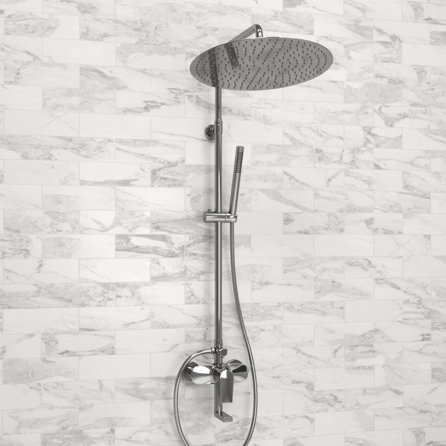 В комплект входят все необходимые элементы для установки: аэратор, металлическая розетка, эксцентрик, шланг, лейка, держатель лейки, верхний душ, смеситель, кронштейн, штанга душевая.