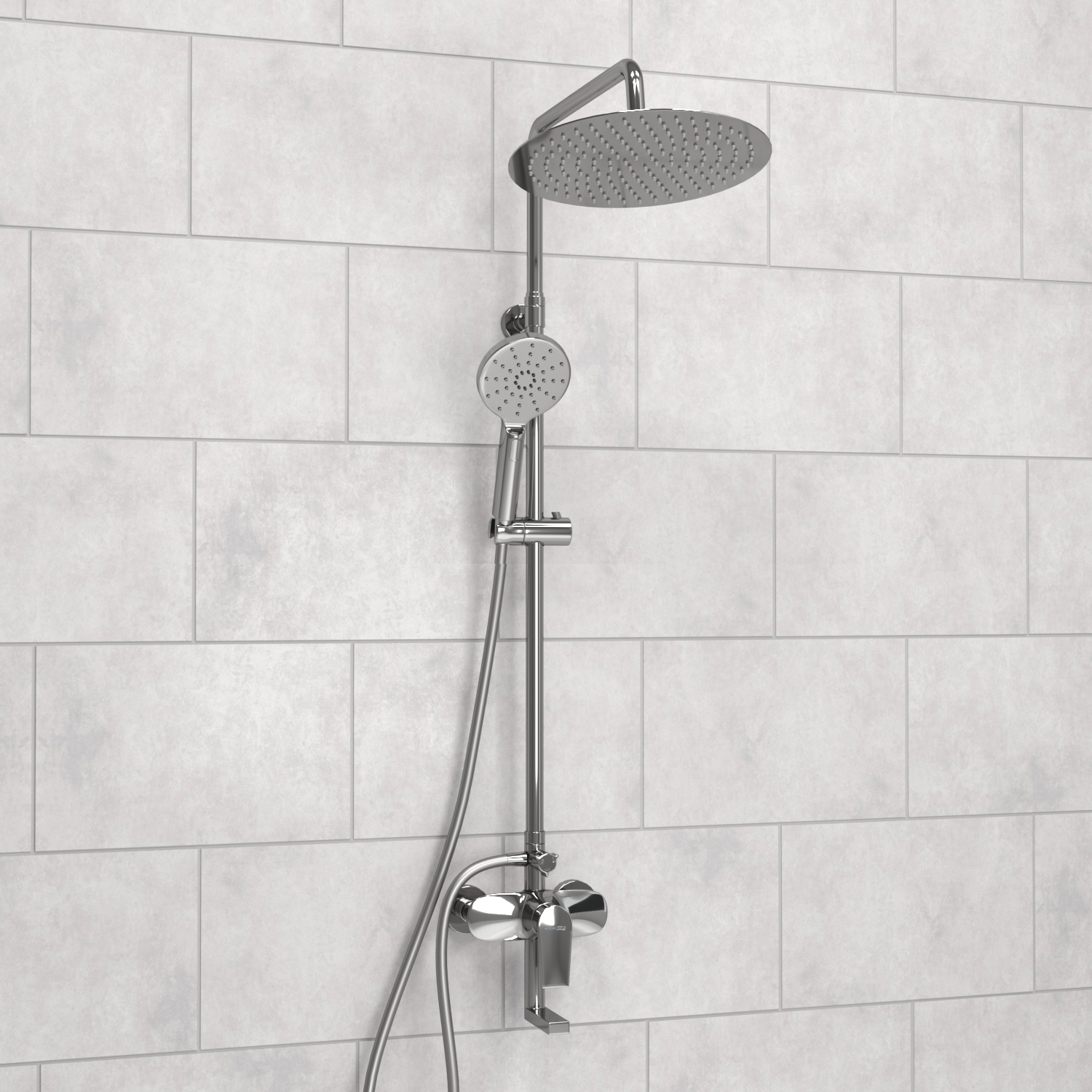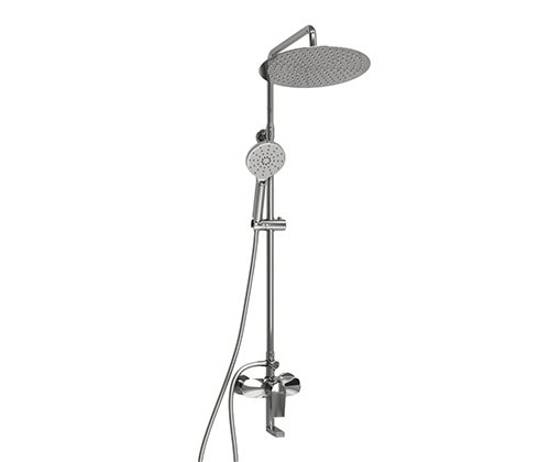Душевой комплект оснащен круглым верхним душем, который обеспечивает равномерное распределение воды и создает эффект тропического дождя. Высота стойки для душа составляет 113 см, что позволяет комфортно принимать душ даже высоким людям.
