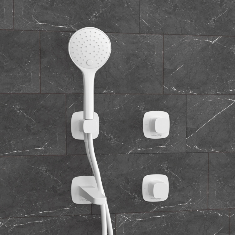Смеситель изготовлен из латуни, что гарантирует его долговечность и надежность. Покрытие выполнено с использованием порошковой окраски, что придает изделию стильный матовый белый цвет.