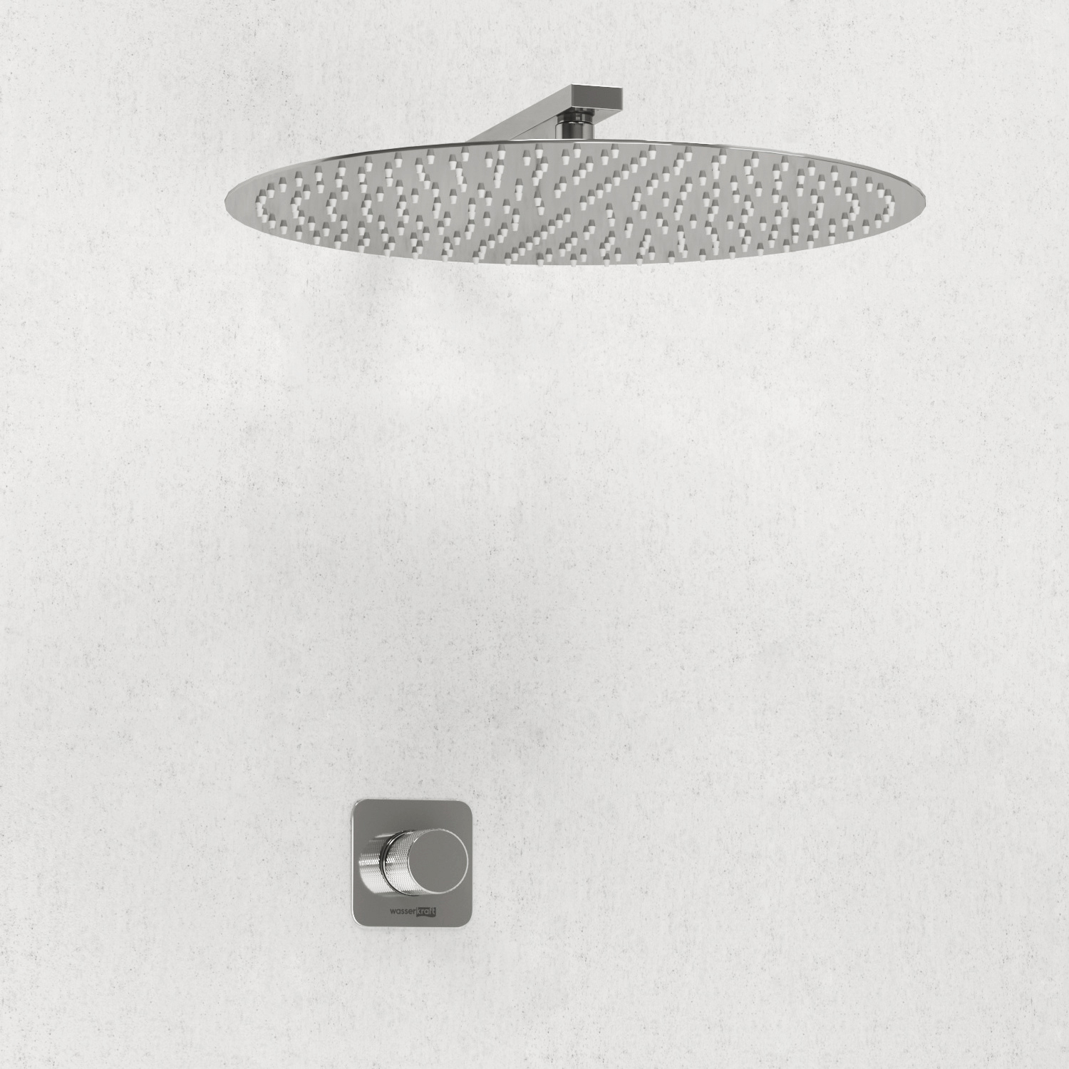 Комплект включает в себя все необходимое для установки и использования. В комплект входит верхний душ, скрытая монтажная часть, смеситель и кронштейн. Все элементы выполнены в цвете хром, что придает им современный и стильный вид.