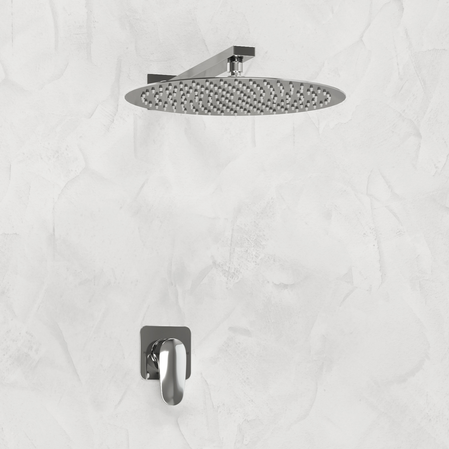 В комплект входит все необходимое для установки: верхний душ, скрытая монтажная часть, смеситель, кронштейн.