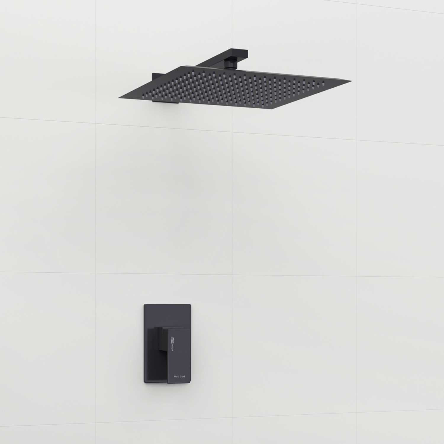 Комплект включает в себя смеситель для душа Abens 2051 и верхнюю душевую насадку A162. Наружная часть смесителя выполнена в черном матовом цвете, что придает ему современный и элегантный вид.