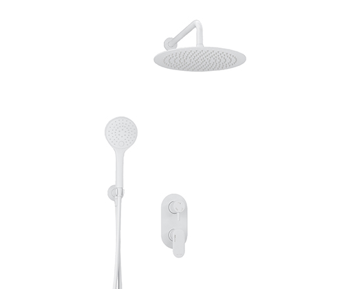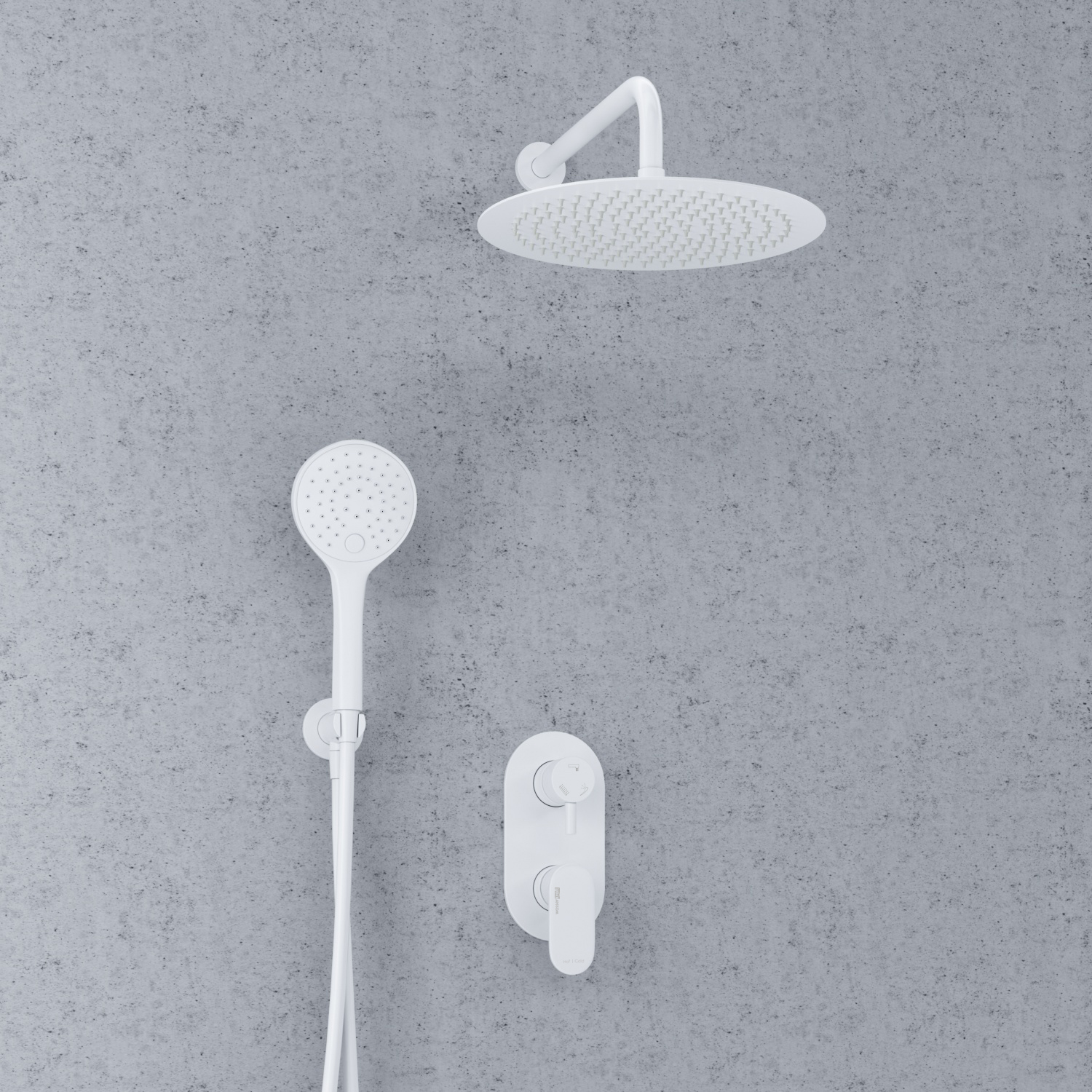 Комплект включает в себя все необходимые элементы для комфортного и гигиеничного использования. В комплект входят: верхний душ, лейка, шланг, скрытая монтажная часть, смеситель, кронштейн и подключение для душевого шланга с держателем.