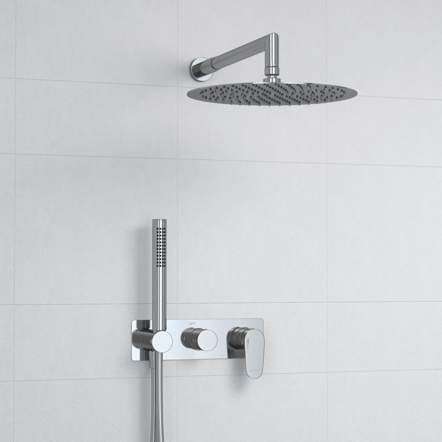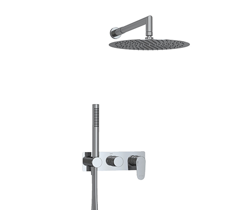 Комплект включает в себя все необходимые элементы для создания комфортной душевой зоны. В комплект входят: верхний душ, лейка, шланг, скрытая монтажная часть, смеситель, кронштейн и подключение для душевого шланга с держателем.
