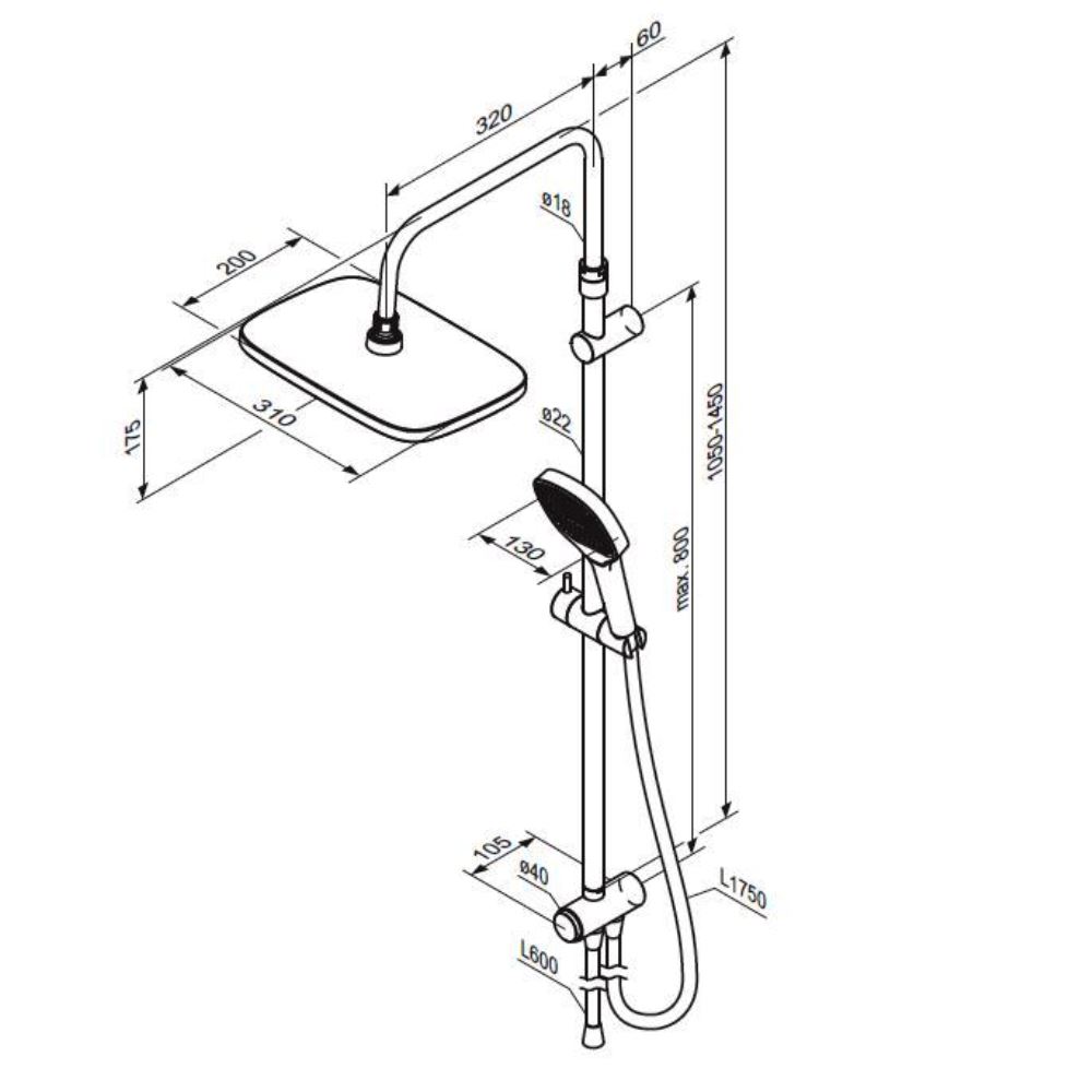 —940000000 Merkur душ.система: верх.душ 310*200 мм, ручн.душ 3 ф-ции 130*250 мм, штанга 1050-1450, хр