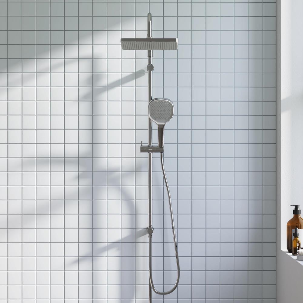 Чистые геометричные линии душевой системы Merkur идеально впишутся в интерьер современной ванной комнаты в скандинавском стиле. Несмотря на минималистичный дизайн душевые системы этой серии отличаются широким функционалом и необычайной эргономичностью. Настоящее SPA прямо у вас дома: увеличенный размер тропической лейки с регулируемым углом наклона (220 мм) и 3 режима ручного душа сделают ваши ежедневные ритуалы незабываемыми. Благодаря телескопической штанге с диапазоном регулировки в 400 мм водные процедуры будут одинаково комфортны абсолютно для всех членов семьи. Простота и минимализм во всем: переключайте потоки воды между ручной и тропической лейкой всего одним нажатием. Благодаря функции очистки резиновых форсунок Rub& Clean поддерживать чистоту стало еще проще. Инновационное покрытие High Gloss надежно защищает хромовую поверхность душевой системы от мелких повреждений и сохраняет ювелирный блеск на долгие годы. ""