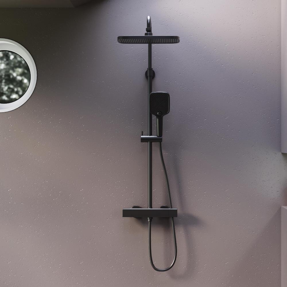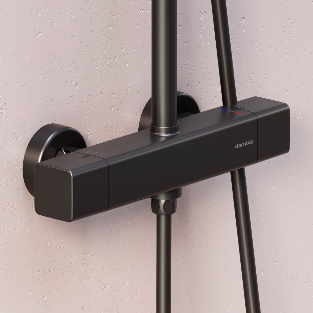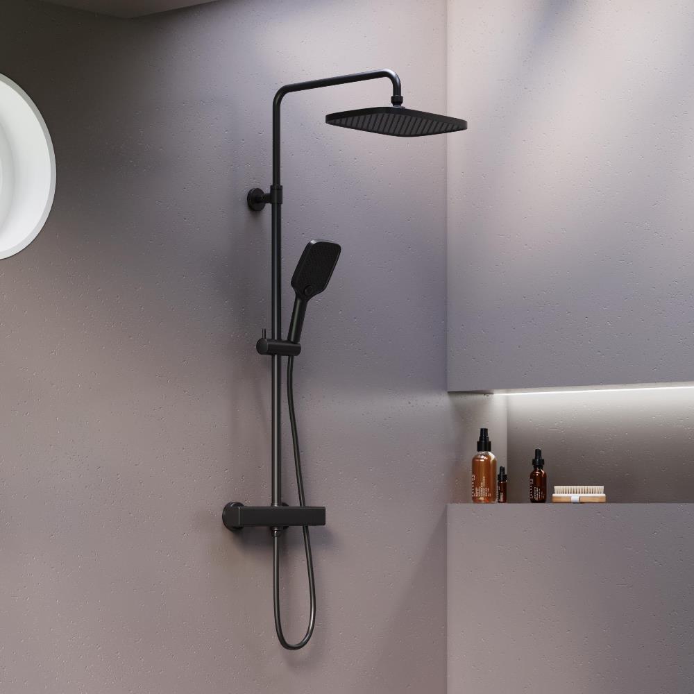 Мягкие геометричные формы душевой система Gala в сочетании с трендовым черным покрытием идеально впишутся в современную ванную комнату. Простая и минималистичная на первый взгляд она чрезвычайно функциональна и удовлетворит даже самого искушенного пользователя. Максимальная безопасность: термостатический картридж 35 мм обеспечивает точную настройку температуры и напора воды. Выставляйте комфортные для вас параметры легким поворотом правой ручки смесителя. Благодаря телескопической штанге с диапазоном регулировки в 400 мм водные процедуры будут одинаково комфортны абсолютно для всех членов семьи. Настоящее SPA прямо у вас дома: увеличенный размер тропической лейки с регулируемым углом наклона (220 мм) и 3 режима ручного душа сделают ваши ежедневные ритуалы незабываемыми. Простота и минимализм во всем: переключайте потоки воды между ручной и тропической лейкой поворотом левой ручки смесителя. Специальное PVD-покрытие гарантирует чрезвычайную прочность душевой системы. Матово-черная поверхность не выцветает с годами и устойчива к механическим повреждениям загрязнениям и отпечаткам пальцев. ""