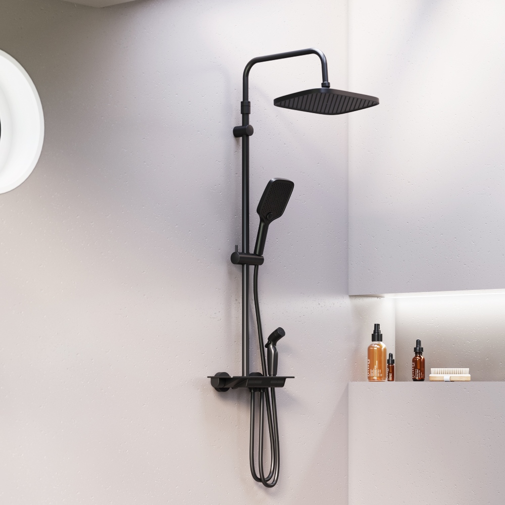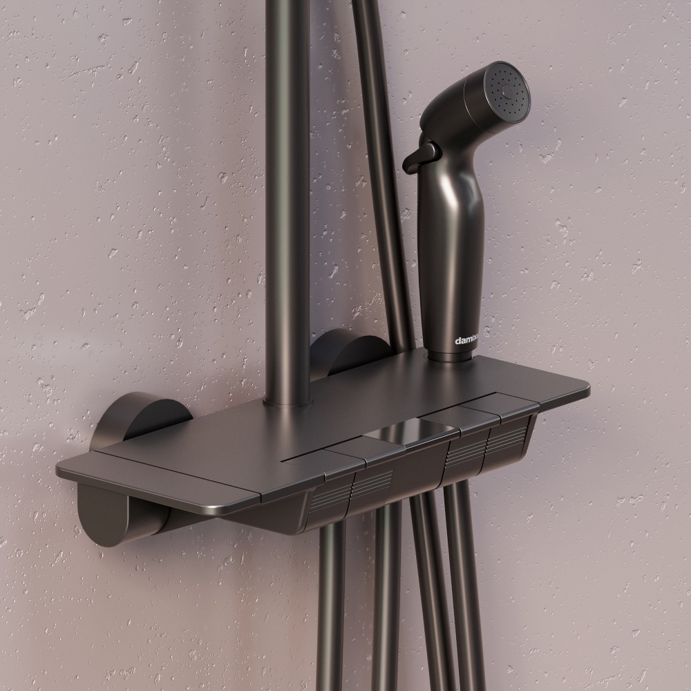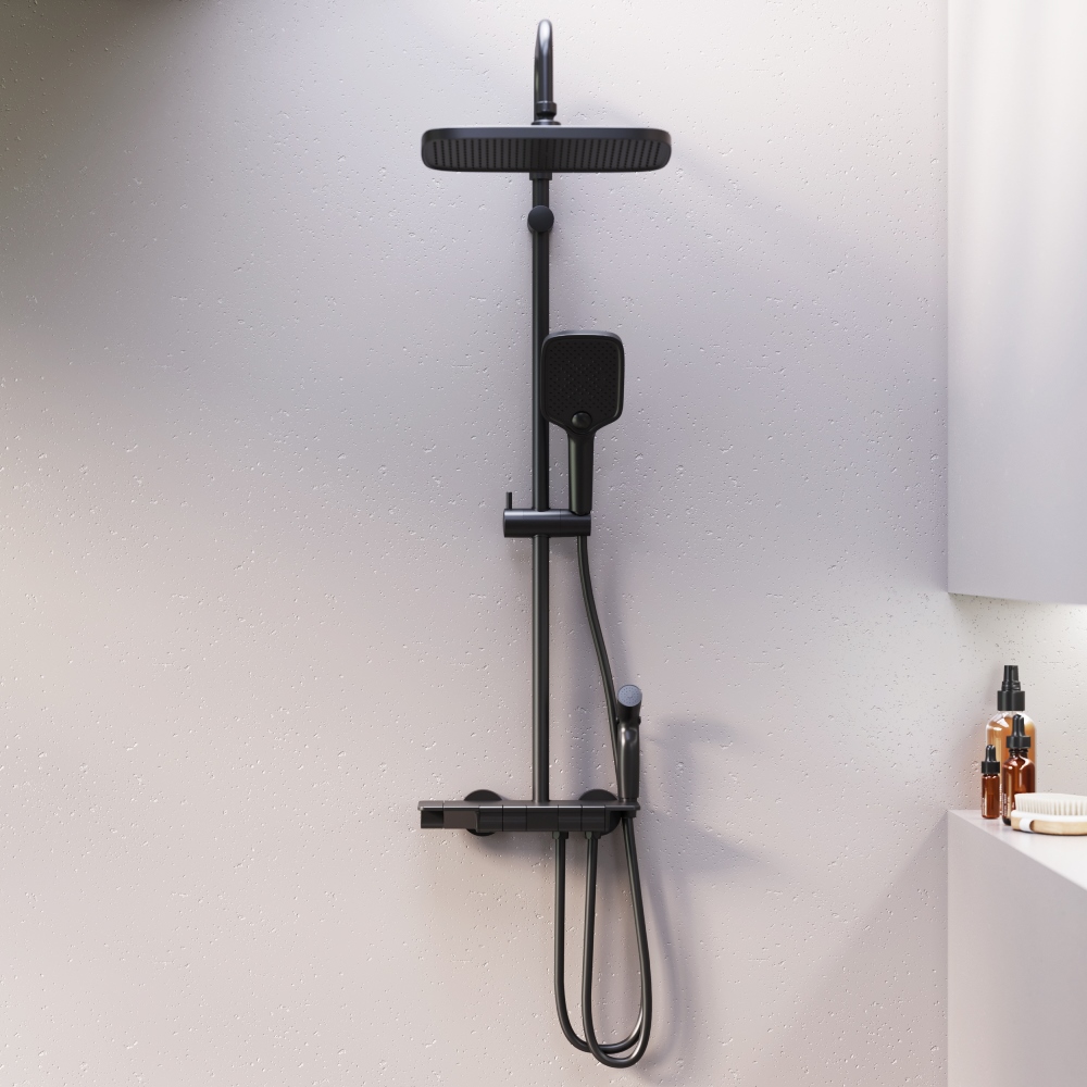 Мягкие геометричные формы душевой система Gala в сочетании с трендовым черным покрытием идеально впишутся в современную ванную комнату. Минималистичная и стильная она отличается самым широким функционалом в линейке и удовлетворит даже искушенного пользователя. Максимальная безопасность и технологичность: термостатический картридж 35 мм обеспечивает точную настройку температуры и напора воды. Душевая система оснащена автоматическим дисплеем отражающим температуру воды в реальном времени. Непревзойдённый комфорт и удобство: тонкий латунный корпус выполнен в виде компактной полочки где вы можете хранить все необходимые вещи. Благодаря телескопической штанге с диапазоном регулировки в 400 мм водные процедуры будут одинаково комфортны абсолютно для всех членов семьи. Простота и минимализм во всем: переключайте потоки воды между изливом гигиеническим душем ручной и тропической лейкой а также плавно управляйте напором воды нажатием нескольких клавиш. Настоящее SPA прямо у вас дома: наслаждайтесь увеличенным размер тропической лейки с регулируемым углом наклона (220 мм) и 3-мя режимами ручного душа. Возможность включения 2-х или 3-х режимов одновременно сделает ваши ежедневные ритуалы незабываемыми. ""