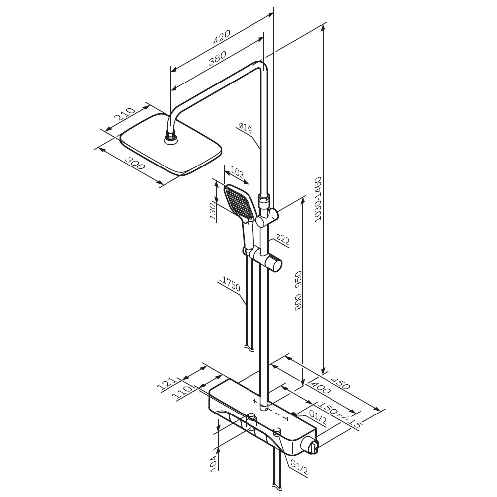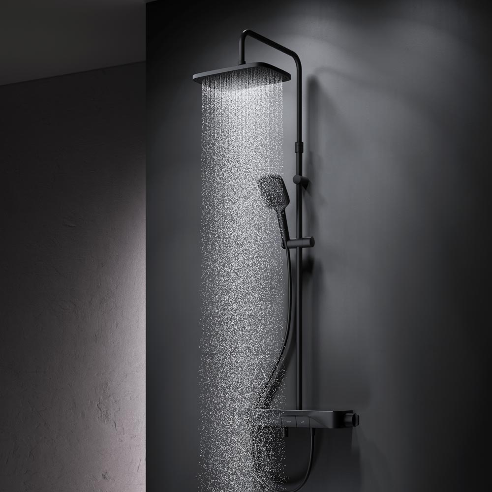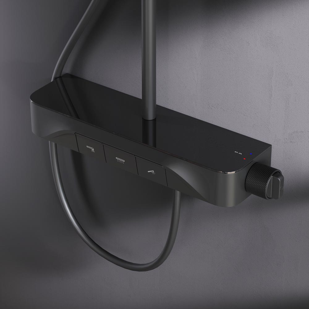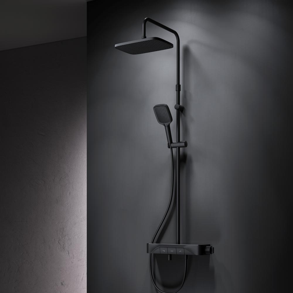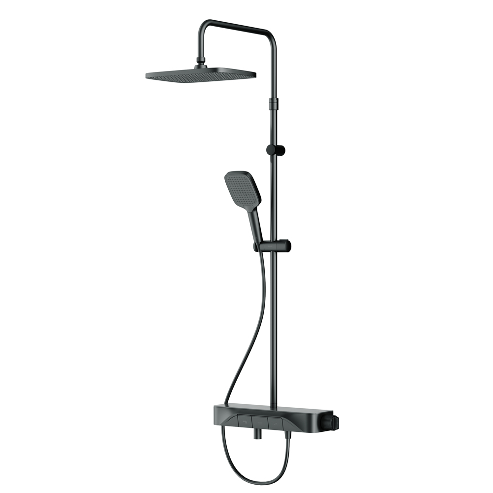 F078F722 Func, душ.система: см-ль-полка д/ванны/душа, душ.штанга, верхн. душ квадр., ручн.душ, черн.