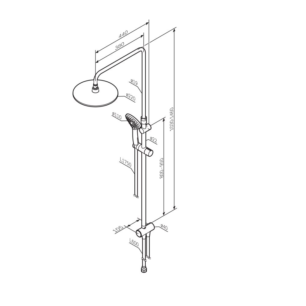 F0790022 Gem,душ.система,набор:верхн.душ d220 мм, ручн.душ 1ф-ция d 110 мм, душ.штанга 1030-1460 мм,