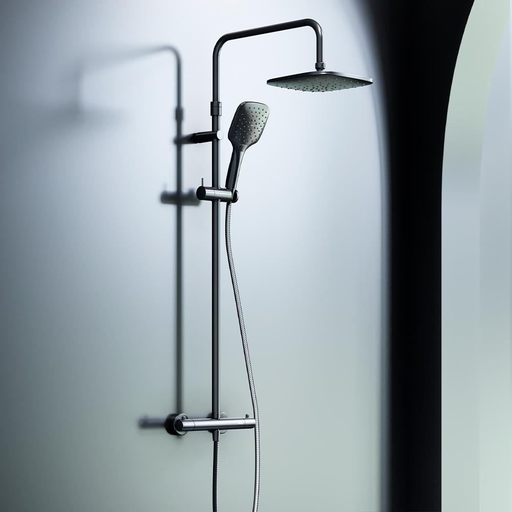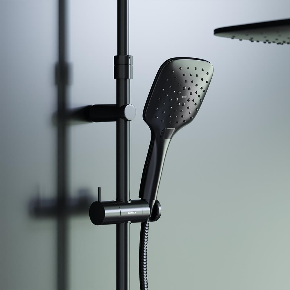 DX218092300 Option, душевая система с ТМС для душа: верхний душ 230*230мм, ручной душ 120мм, ЧЁРНАЯ,