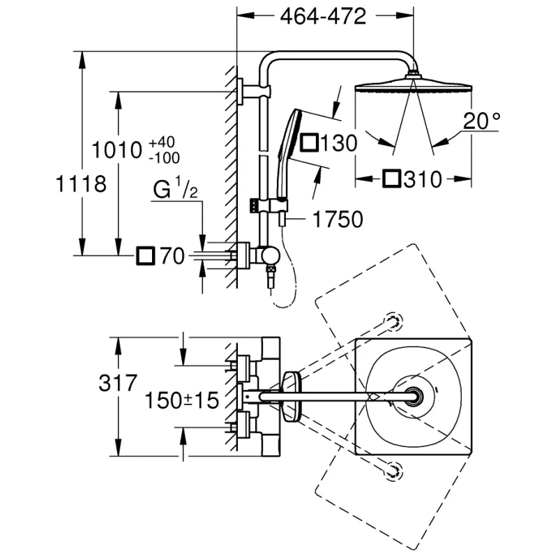 —Душевая система 310 мм Grohe Rainshower SmartActive 26649000