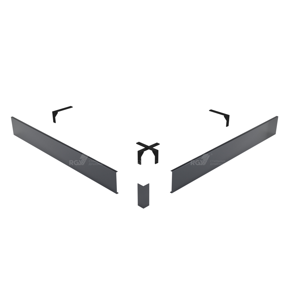 Комплектация: 2 экрана (фронтальный и боковой), соединительный уголок, крепление к ножкам на которые устанавливается поддон.