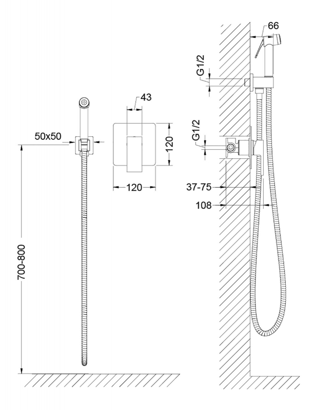 В комплекте поставки: смеситель, лейка, шланг, держатель, шланговое подключение.