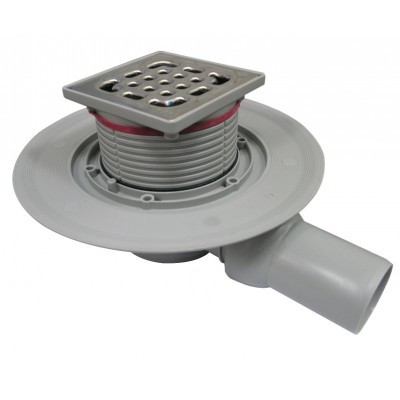 Трап с сухим затвором и изоляционным фланцем. С вращающейся и регулируемой по высоте насадкой 100 x 100 мм. Решетка из нержавеющей стали 94 х 94 мм. Рамка из стали. С гидрозатвором (высота водяного столба 30 мм). Впускной штуцер DN 40, защитная заглушка, шарнирный отвод. Выход вбок.