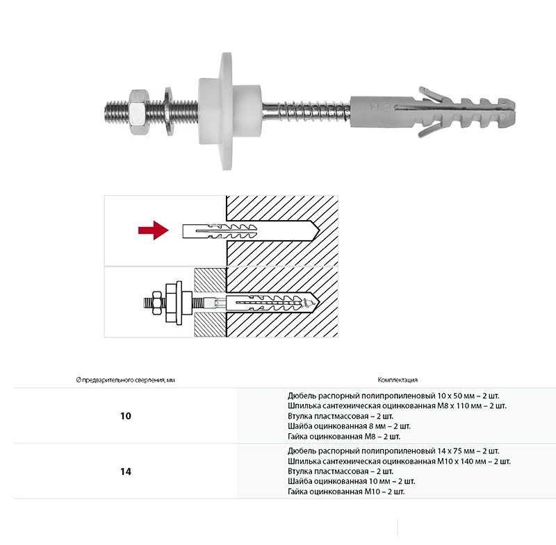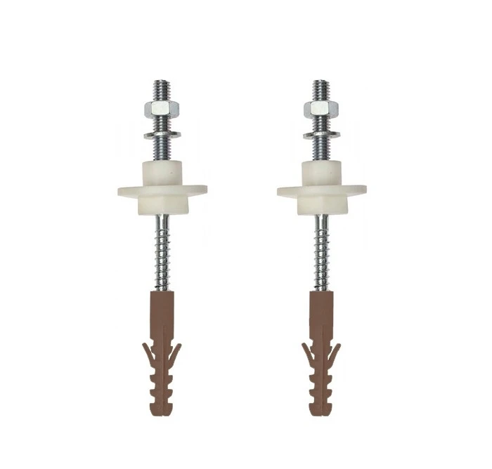 Универсальный крепеж для раковин и писсуаров 9034.9.000.000.1, 2 шт 10х120 мм, подходит к раковинам и писсуарам настенного монтажа. Комплектация: металлические шпильки с резьбой - 2 шт, пластиковый дюбель - 2 шт, гайка - 2 шт, шайба - 2 шт, пластиковая втулка - 2 шт.