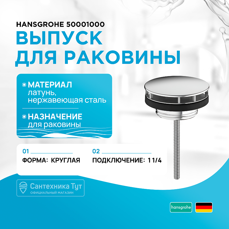 Выпуск для раковины Hansgrohe 50001000 незапираемый.