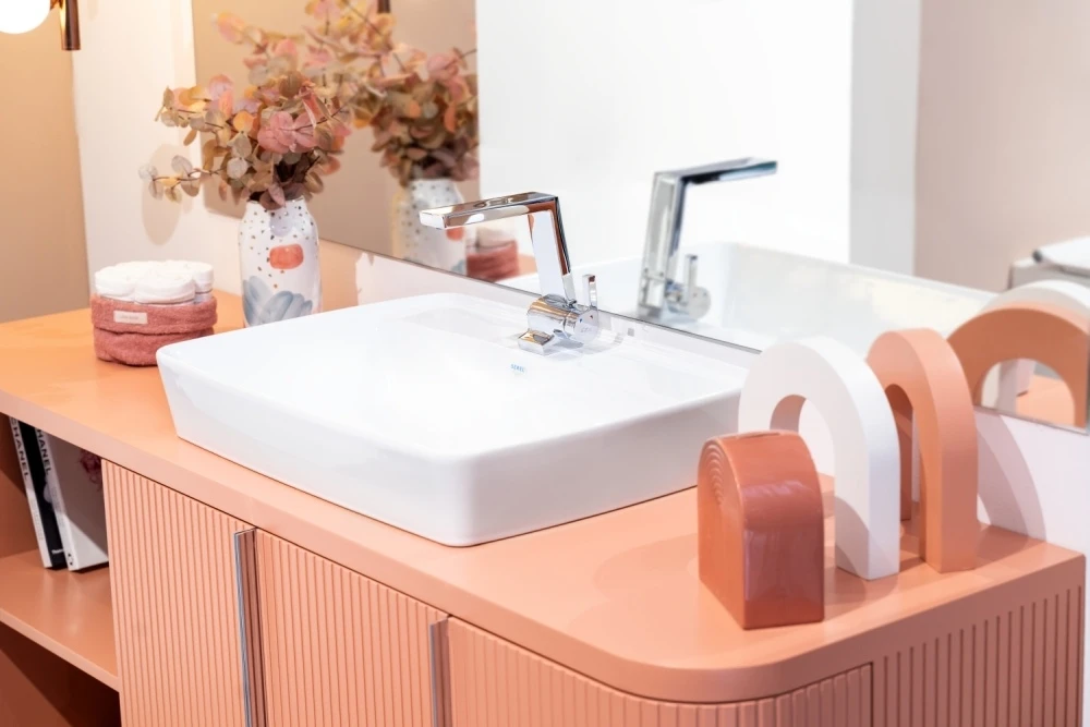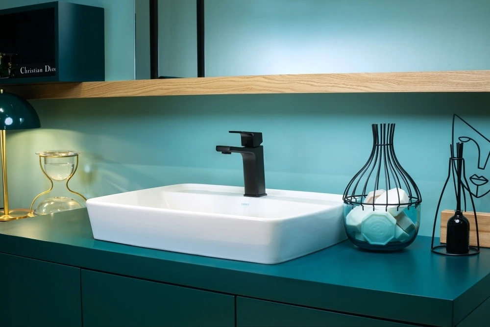 Установка раковины накладная, что позволяет сэкономить пространство в ванной комнате и облегчает процесс монтажа.