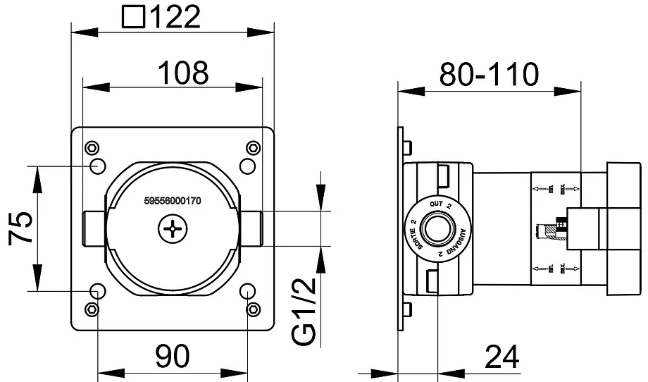 - Внутренний блок для встройки в стену глубина встройки 80 - 110 мм