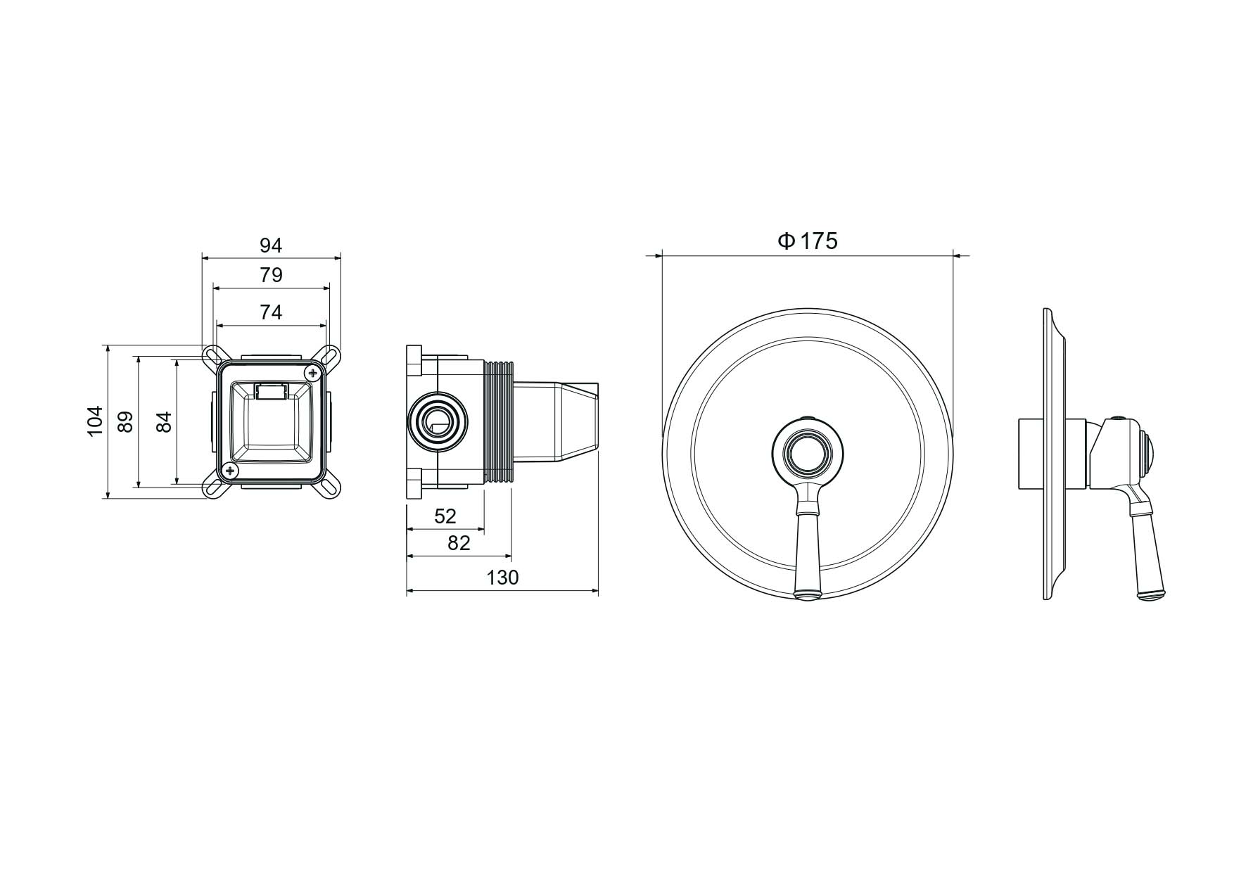 Смеситель оснащен системой быстрого монтажа, что значительно упрощает процесс установки. Диаметр монтажных отверстий составляет 25.0 мм, что позволяет легко установить смеситель в душевую зону.