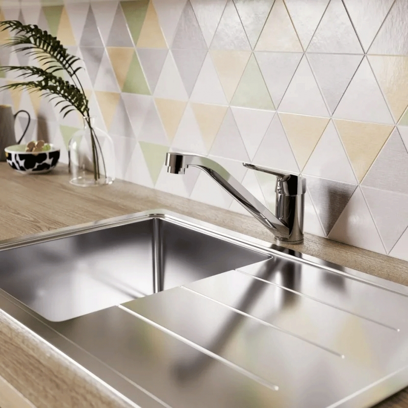 - Система монтажа Easy-Fix (облегченный монтаж) с пластиковой опорной пластиной для более стабильного монтажа на мойке из нержавеющей стали.
