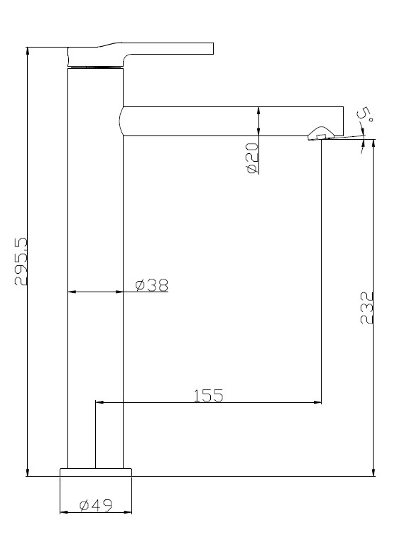 Ширина смесителя составляет 38 см, а глубина - 155 см. Это делает его компактным и удобным для использования.