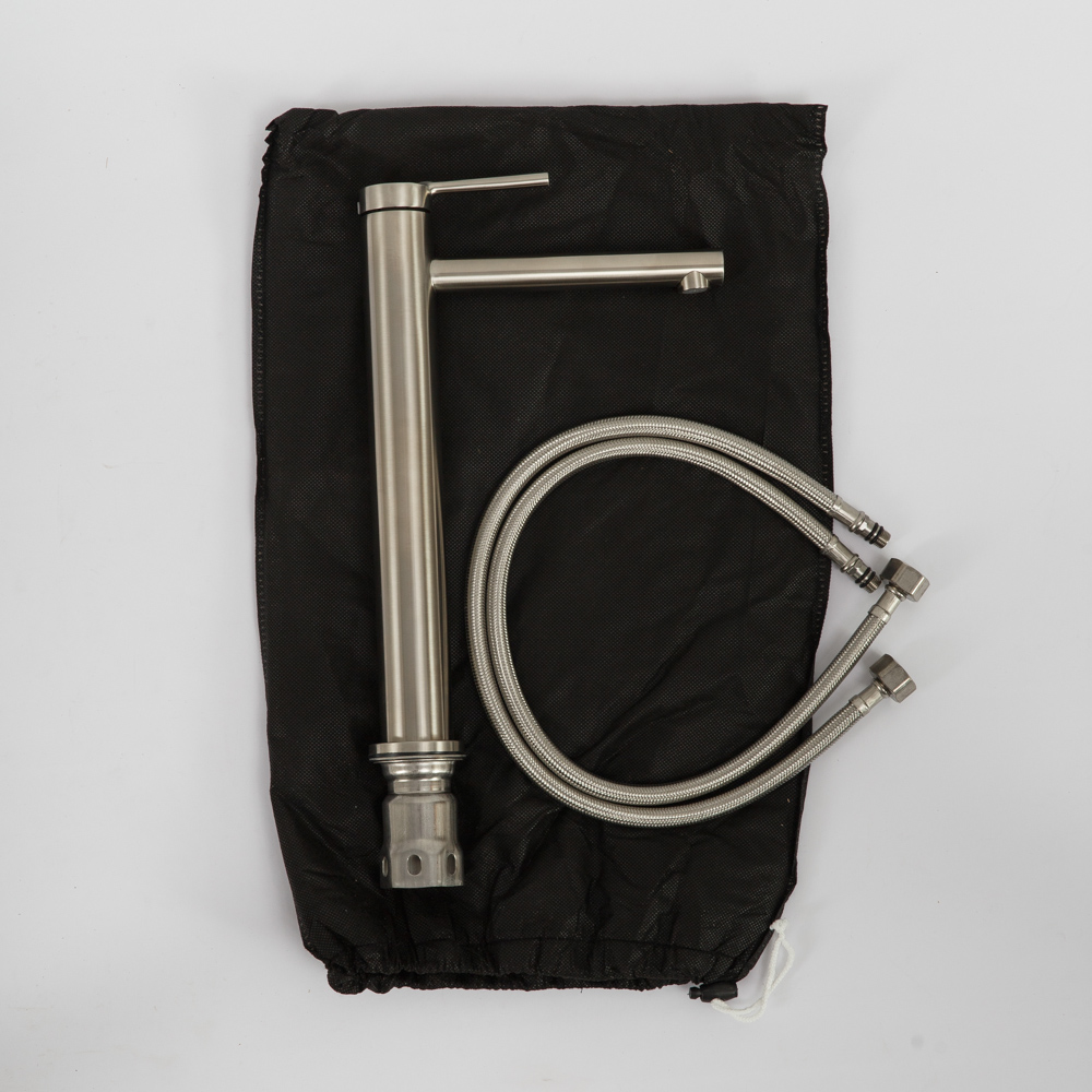 Смеситель изготовлен из нержавеющей стали, что гарантирует его долговечность и устойчивость к коррозии. Нержавеющая сталь также придает смесителю стильный и современный вид.