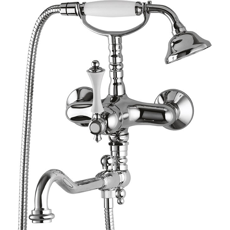 Смеситель для ванны Cezares Margot MARGOT-VDFM2-01-Bi однорычажный, с аэратором, с душевым гарнитуром, монтируемый в два отверстия.