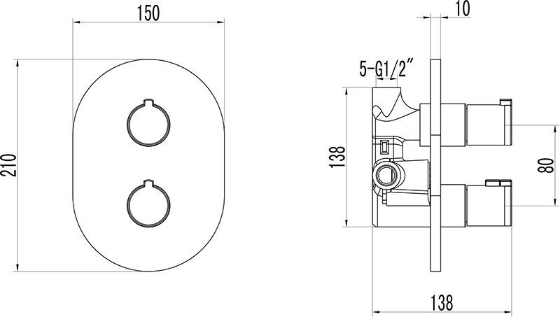Cмеситель термостатический скрытого монтажа Chrome CR 064.00 без переключателя на один выход