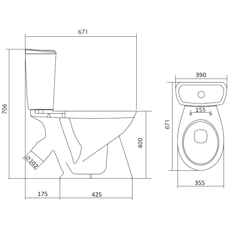 Форма унитаза овальная, что делает его удобным и комфортным в использовании. Габариты унитаза составляют: глубина - 67.1 см, ширина - 39.0 см, высота - 70.6 см.