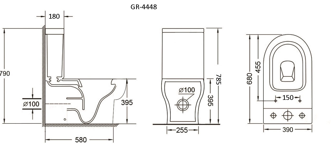 —Унитаз GR-4448S (640*360*830) напольный из 2 мест с тонкой крышкой