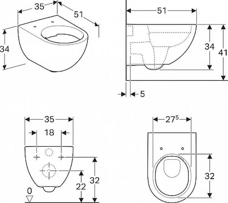 Унитаз Geberit (Keramag) Acanto 500.600.01.2 подвесной.