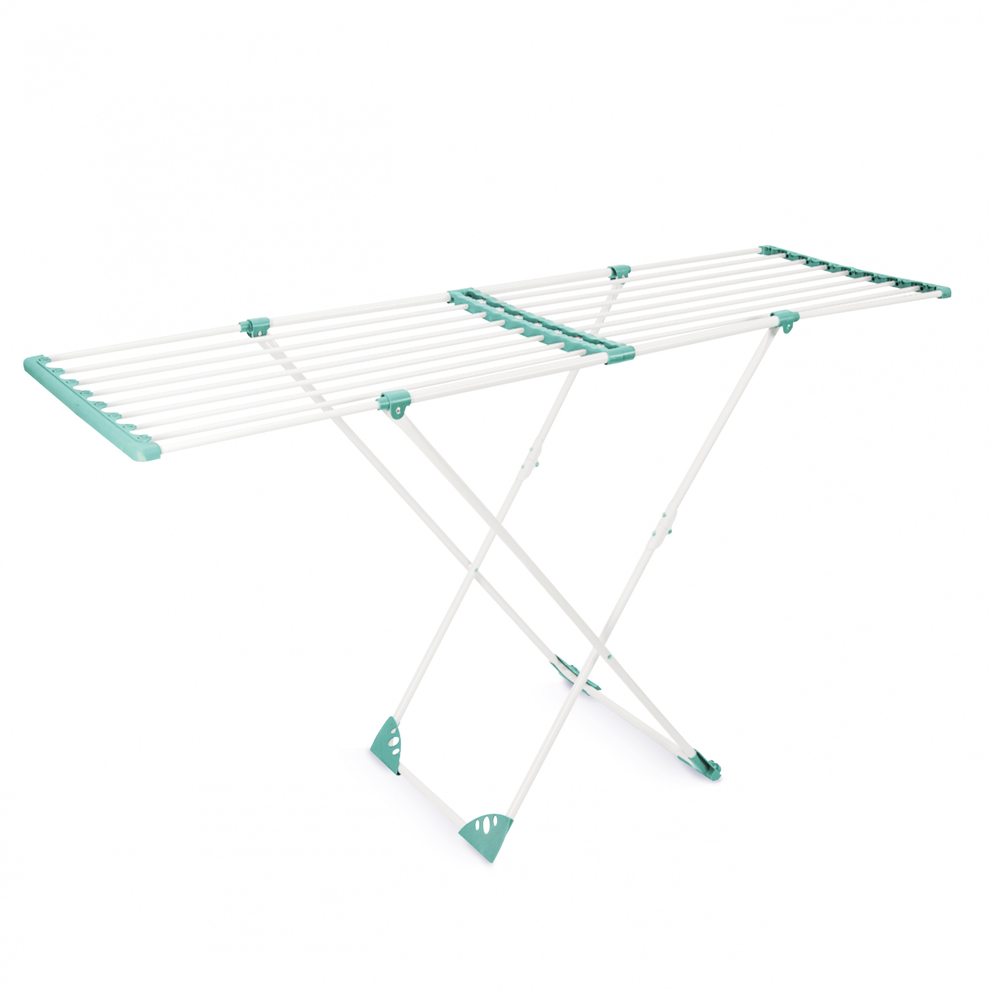 Напольная сушилка для белья AURA Deluxe X это практичное решение для сушки белья дома. Конструктивная особенность сушилки позволяет установить подходящую длину прутьев с помощью телескопического сдвижения. Колесные опоры обеспечивают легкое передвижение сушилки по дому. Диаметр металлических прутьев позволяет сушить белье без заломов. Качественное порошковое окрашивание металлических элементов конструкции защищает от образования ржавчины. Полезная длина для навески белья 20 метров.